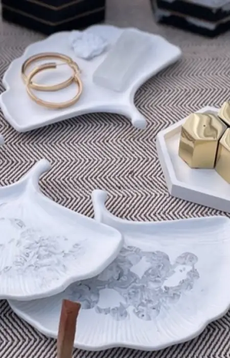 - Svetainėje – padėkliukai gali būti naudojami po žvakėmis ar kavos puodeliais, o indeliai – smulkmenoms tvarkyti. Žvakės taps jaukiu akcentu ant kavos staliuko ar lentynos.