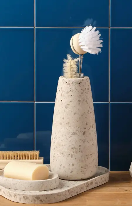 - Vonioje po muilu ar kosmetikos buteliukais, kad būtų apsaugoti paviršiai nuo vandens dėmių.