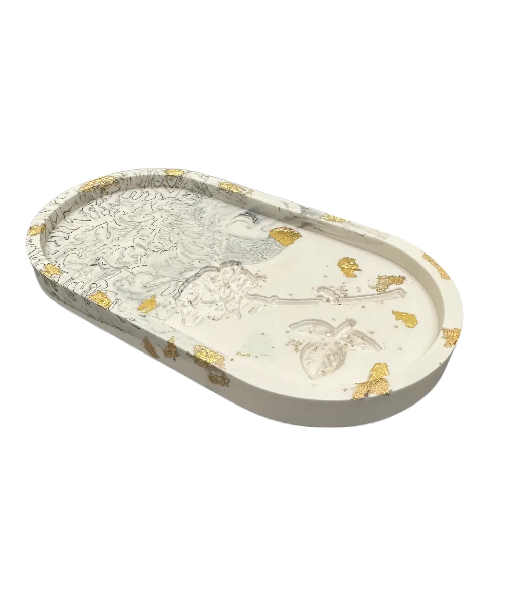 Ovalus padėkliukai su rožyte, puikiai papildys žvakės ar vazelės rinkinį.