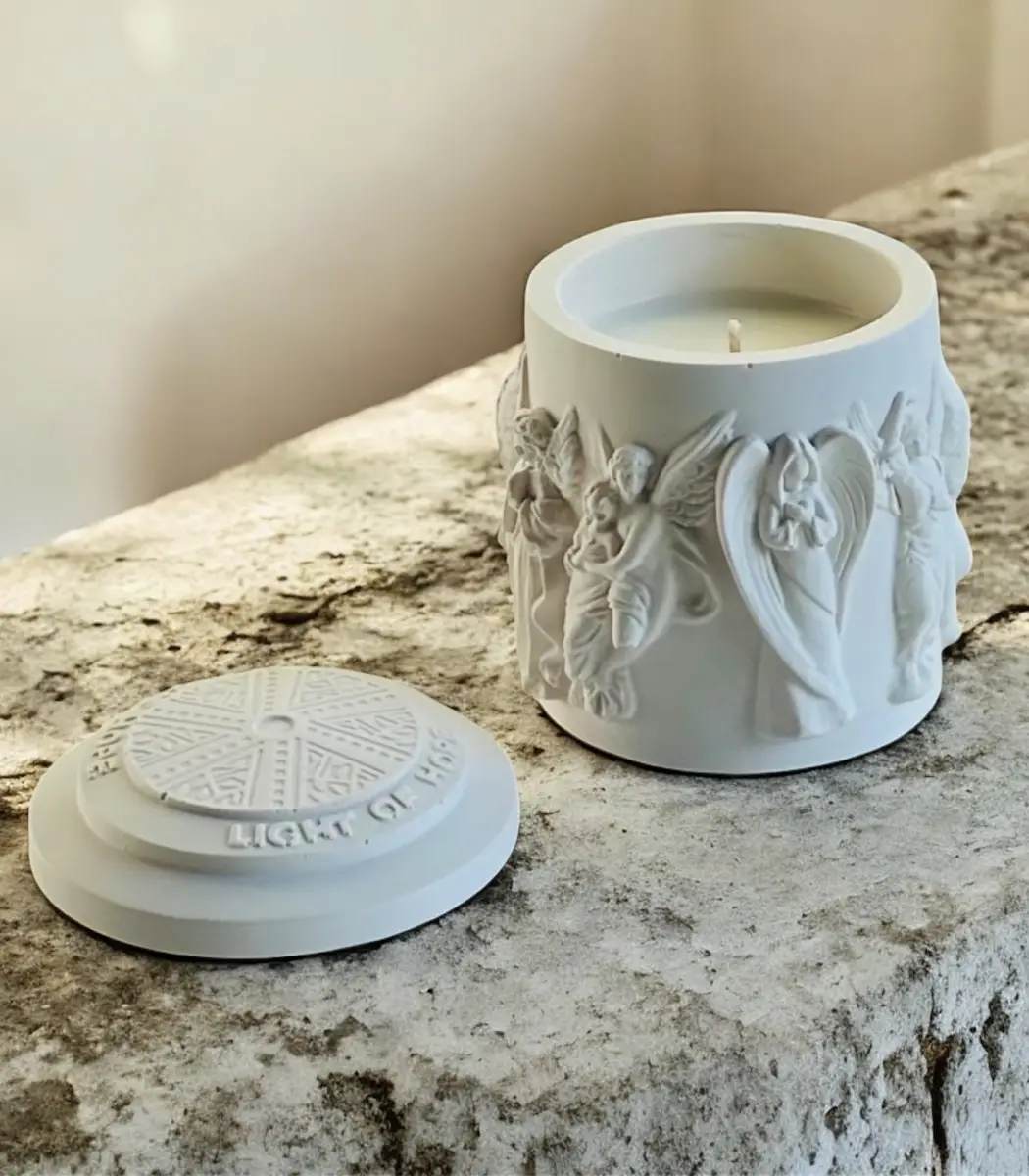 „Rankų darbo žvakė iš gipso – subtili ir minimalistinė interjero detalė. Kiekvienas gaminys yra unikalus, nes liejamas rankomis, todėl gali turėti vos pastebimų paviršiaus niuansų, suteikiančių išskirtinumo. Ši žvakė puikiai dera prie įvairaus stiliaus namų interjero – nuo modernaus iki klasikinio, tampa jaukiu akcentu tiek kasdienai, tiek ypatingoms progoms.“
